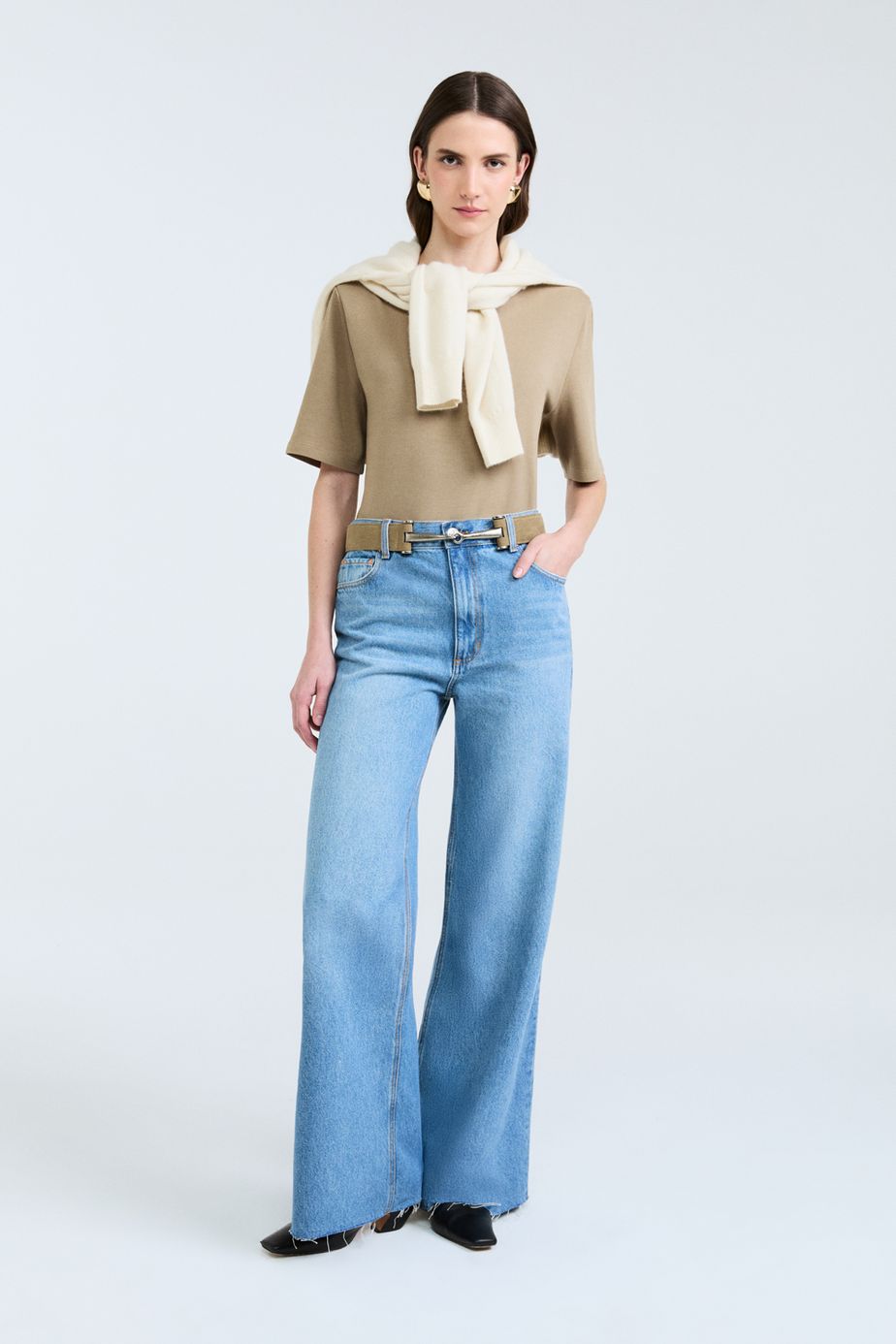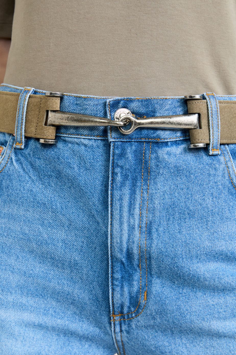 Cinto confeccionado em couro, com comprimento regular e acabamento liso sem estampa. Possui fechamento frontal com fivela e gancho de metal, unindo praticidade e estilo para compor produções elegantes e marcantes.