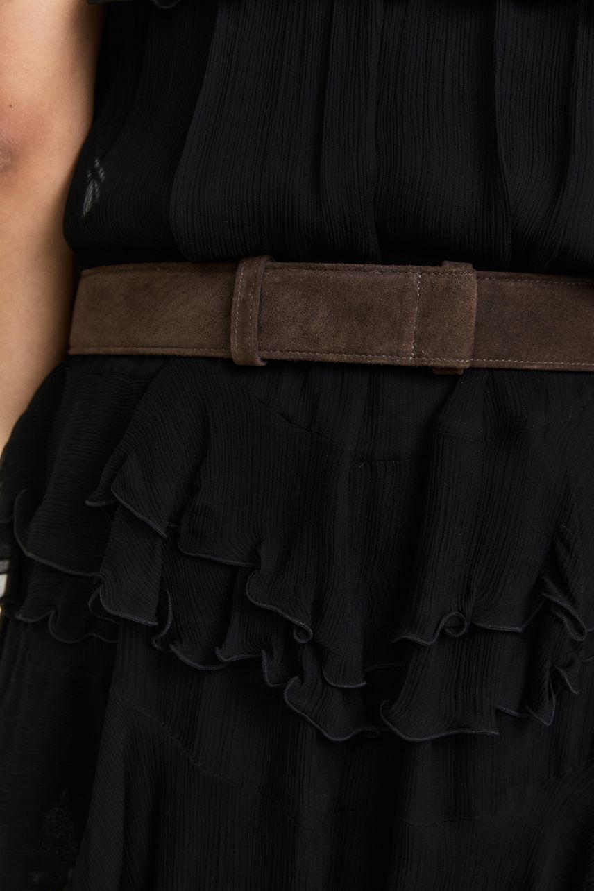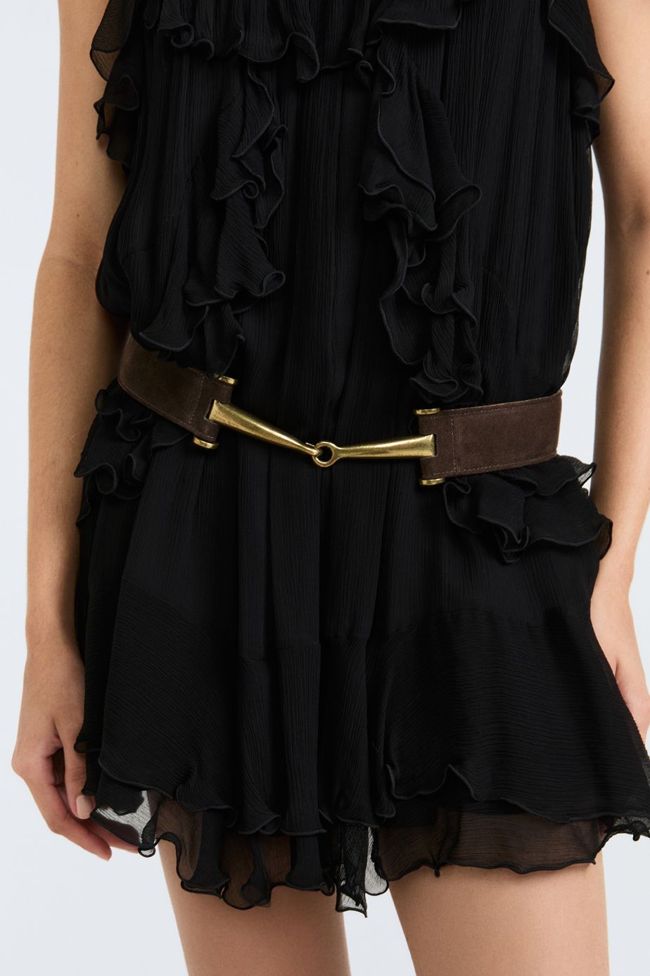Cinto confeccionado em couro, com comprimento regular e acabamento liso sem estampa. Possui fechamento frontal com fivela e gancho de metal, unindo praticidade e estilo para compor produções elegantes e marcantes.