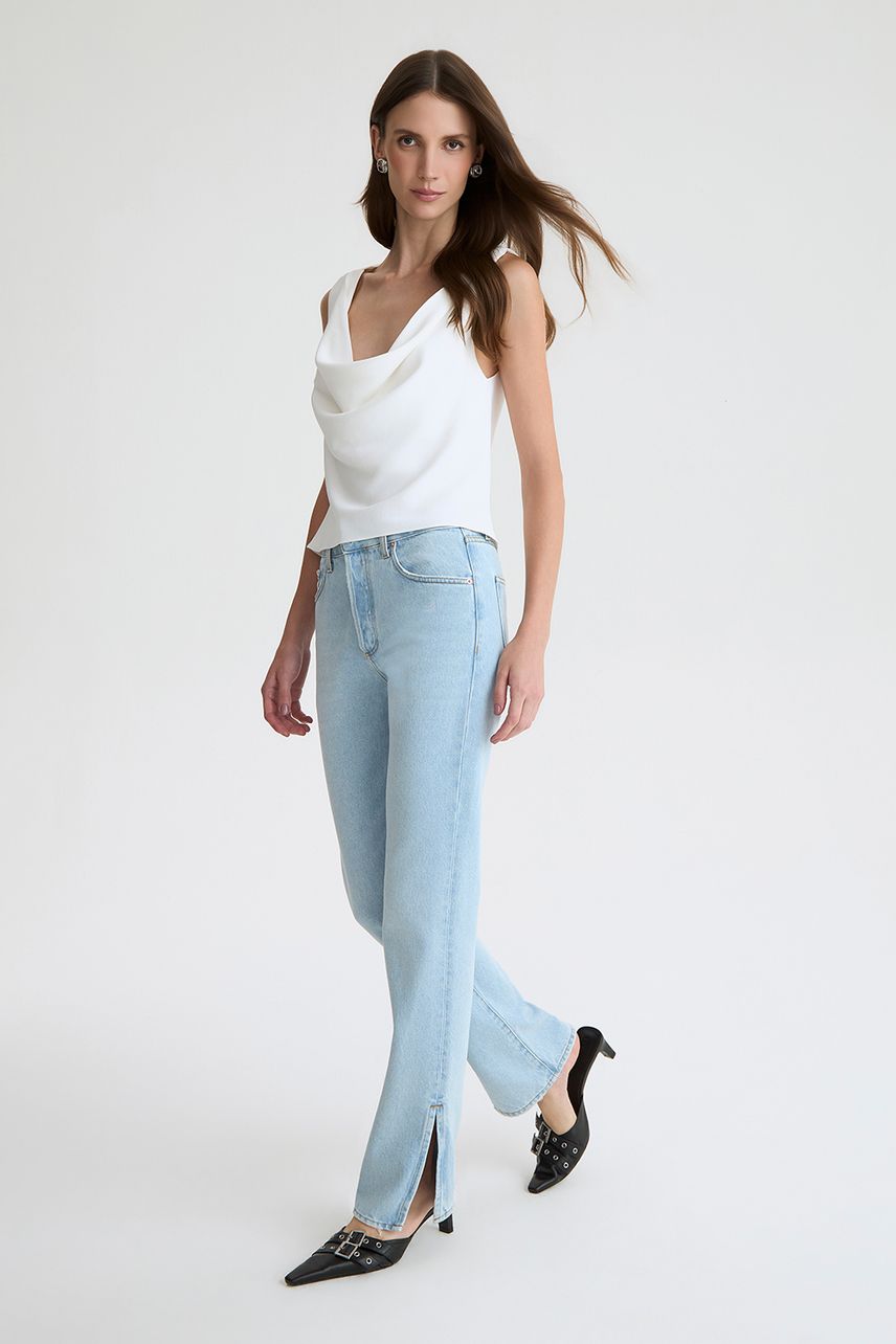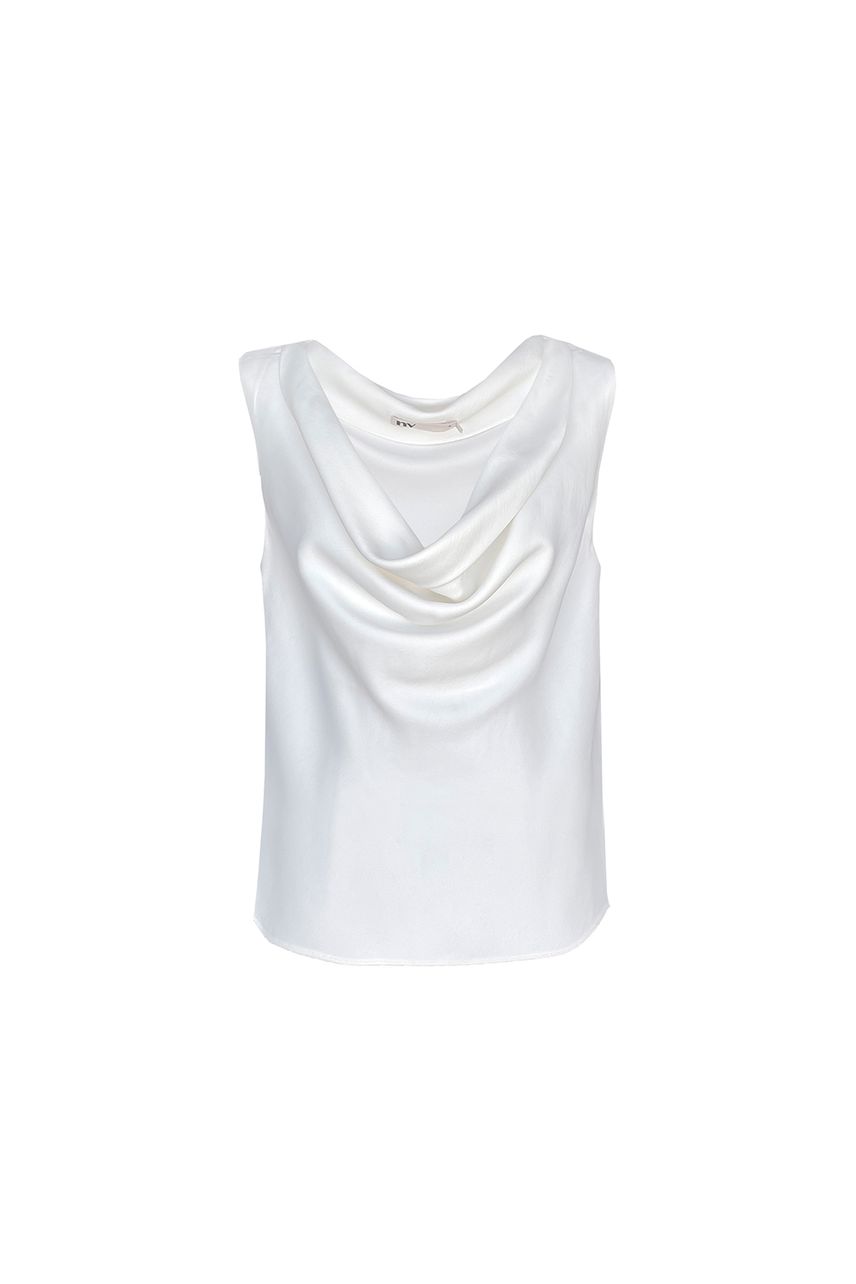 Regata confeccionada em crepe de alfaiataria, com modelagem slim e comprimento regular. Possui decote degagê que cria um efeito de leve drapeado no colo, trazendo sofisticação e fluidez ao visual. Sem estampa e com barra reta, é uma peça elegante e atemporal, ideal para composições refinadas com alfaiataria, transitando com facilidade entre produções formais e looks mais contemporâneos.